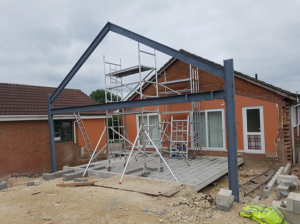 Once the conservatory and patio area were removed we installed a steel framed strucutre to support the very large glass gable and sliding doors. We then tied into the existing building and incorporated the vaulted ceilings to create a room that felt open and airy whilst the massive glass windows and doors framed the stunning views. This turned an old conservatory into a stunning, modern and beautiful living area.